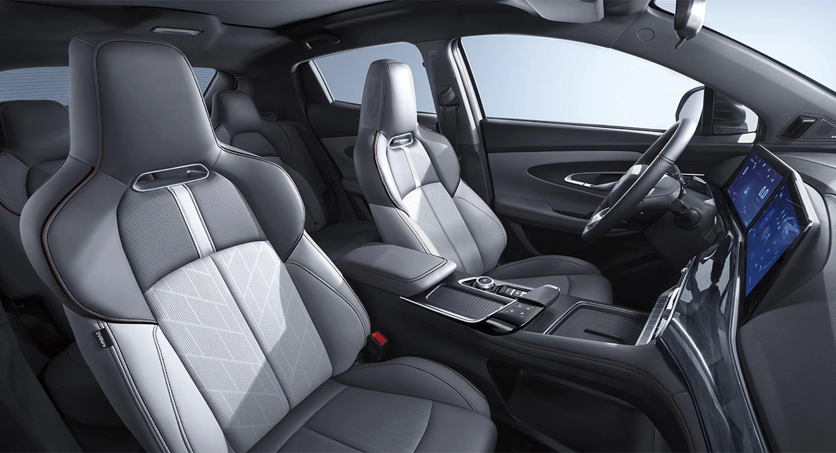 Безрамочная решётка радиатора и стреловидная LED-оптика — подчёркивают футуристичность образа и обеспечивают яркий, безопасный свет в любое время суток. Ниспадающая крыша, переходящая в задний спойлер, и высокая средняя линия кузова — формируют динамичный силуэт и подчёркивают стремительный характер автомобиля. А двойная система выхлопа и 20-дюймовые легкосплавные диски — усиливают выразительность образа и придают автомобилю мощный, уверенный вид.