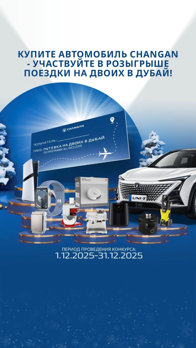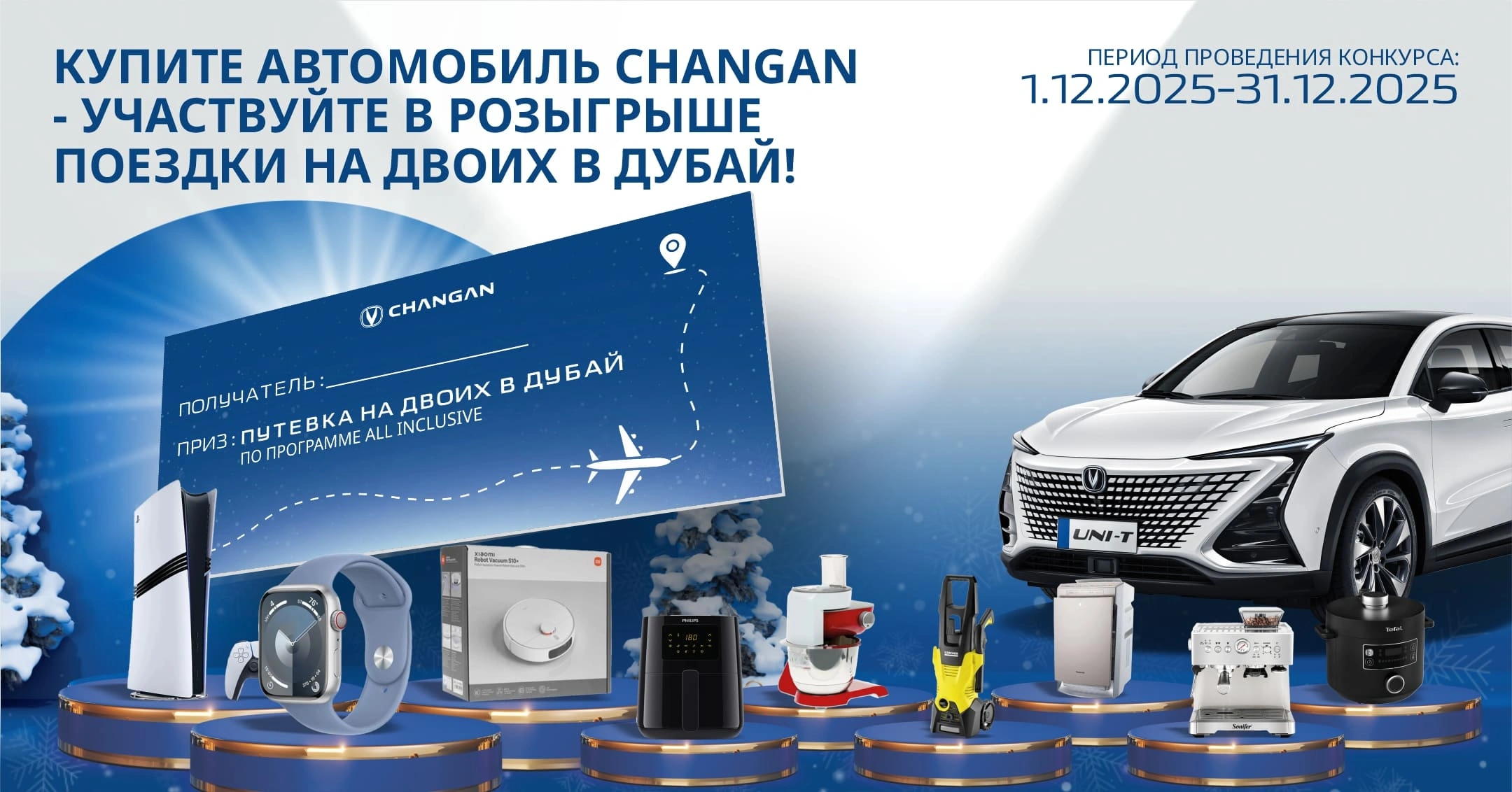 Компания ООО «CHANGAN AUTO DISTRIBUTION» запускает масштабный новогодний розыгрыш для всех покупателей автомобилей Changan. С 1 по 31 декабря каждый клиент, приобретающий новый автомобиль у официальных дилеров, автоматически становится участником акции и получает возможность выиграть один из десяти ценных подарков.